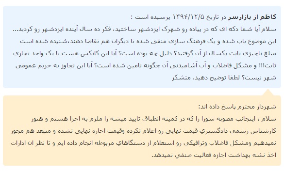 در پاسخ شهردار به آقای کاظم عنوان شده که اینجانب مصوبه شورا در کمیته انطباق اجرا کردم. همه ما می دانیم این طرح ها ابتدا از سوی شهرداری به شورای شهر پیشنهاد شده و شورا با رد یا قبول آن مصوبه صادر میکند. چطور قیمت اجاره کارشناس رسمی گزارش ننموده مناقصه برگزار و برنده شروع به اجرای کار کرده است. آقای شهردار تو این شهر متخصص امر زیاد هست.!!